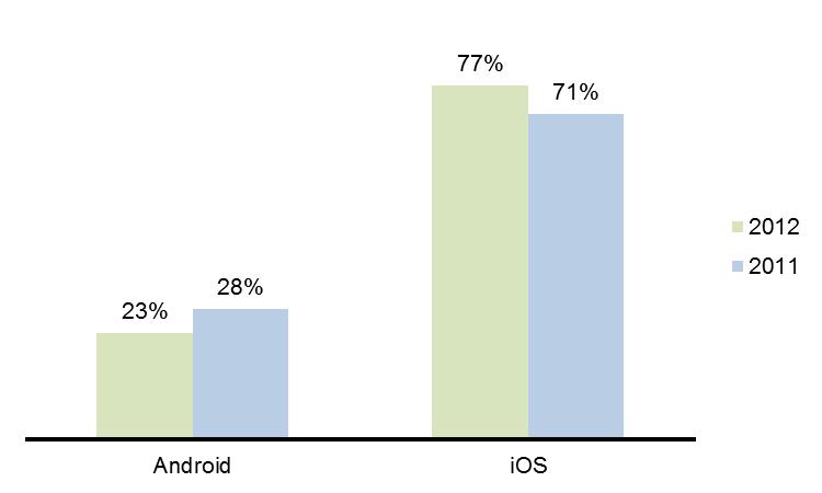 Share of mobile traffic generated as a result of Thankgiving holiday shopping in US (data source: IBM)